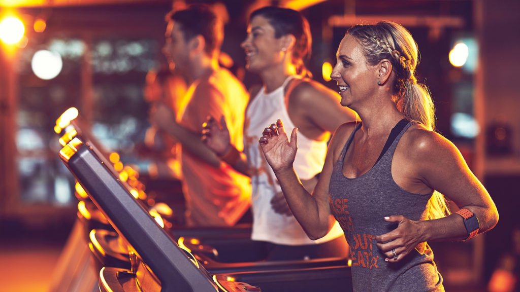 Orangetheory is a fitness class chain with energetic instructors and coaches who instruct and help throughout each and every class. Members will work hard to earn “Splat Points” on the treadmill, weight training, and rowing!